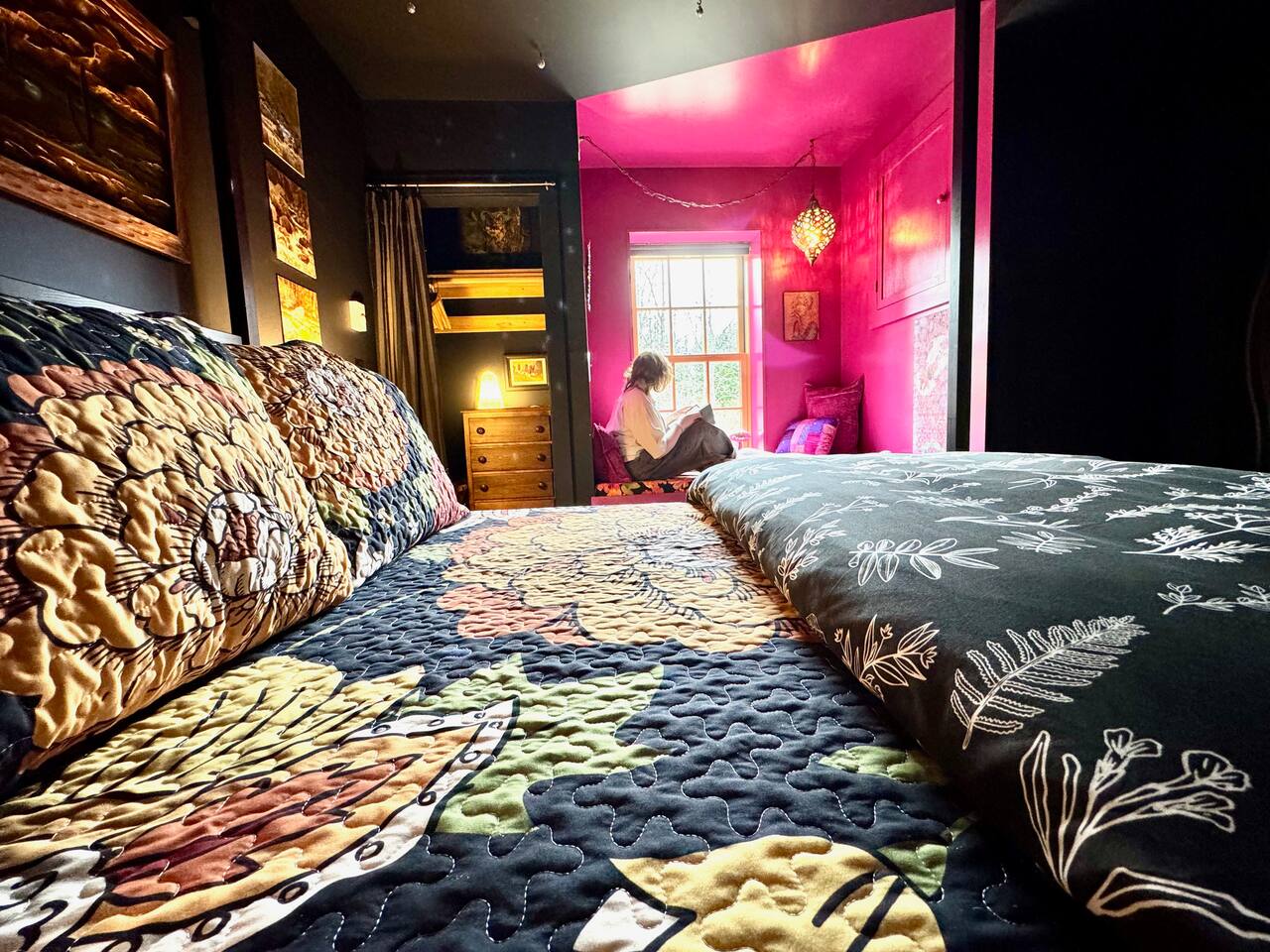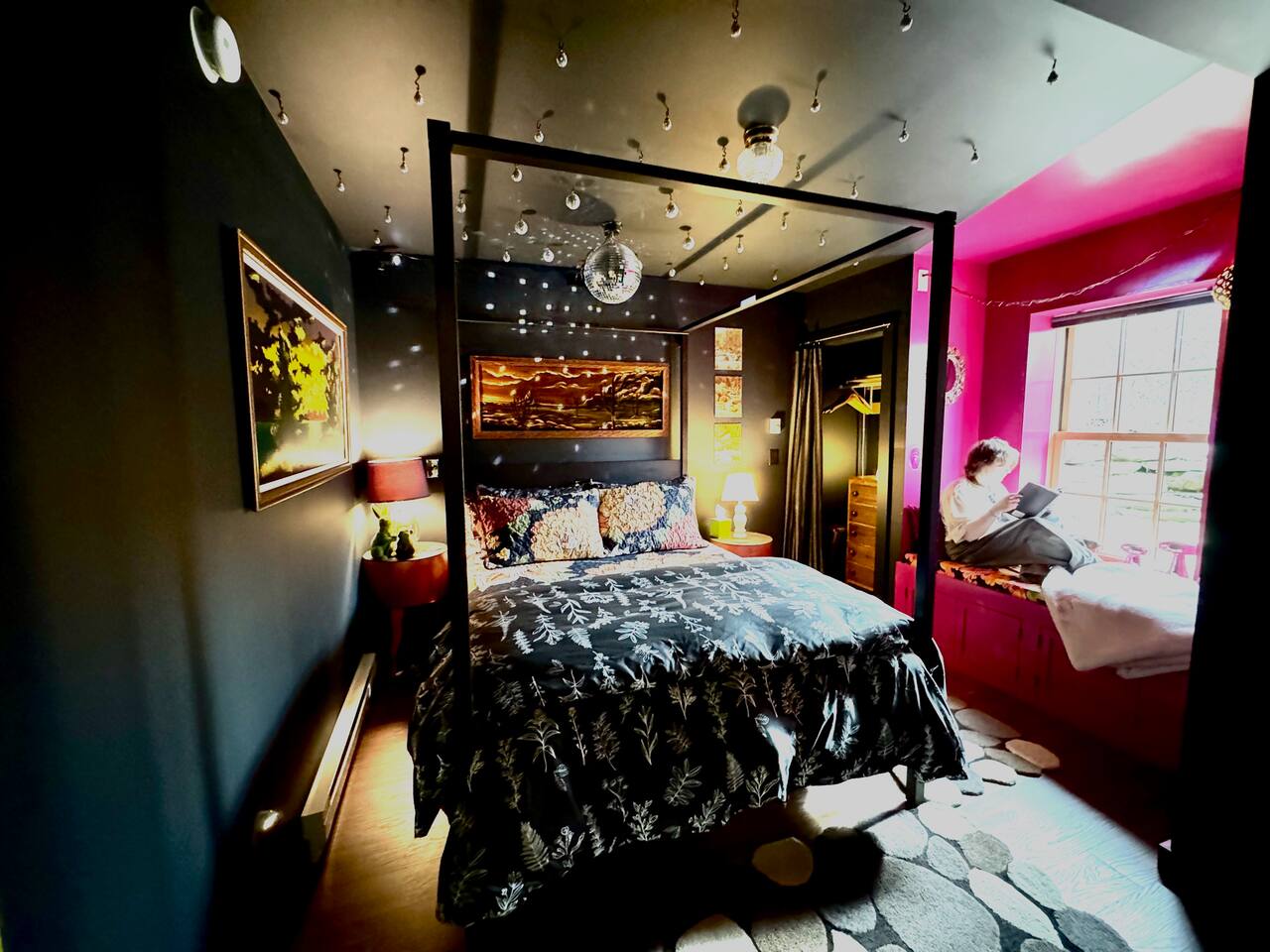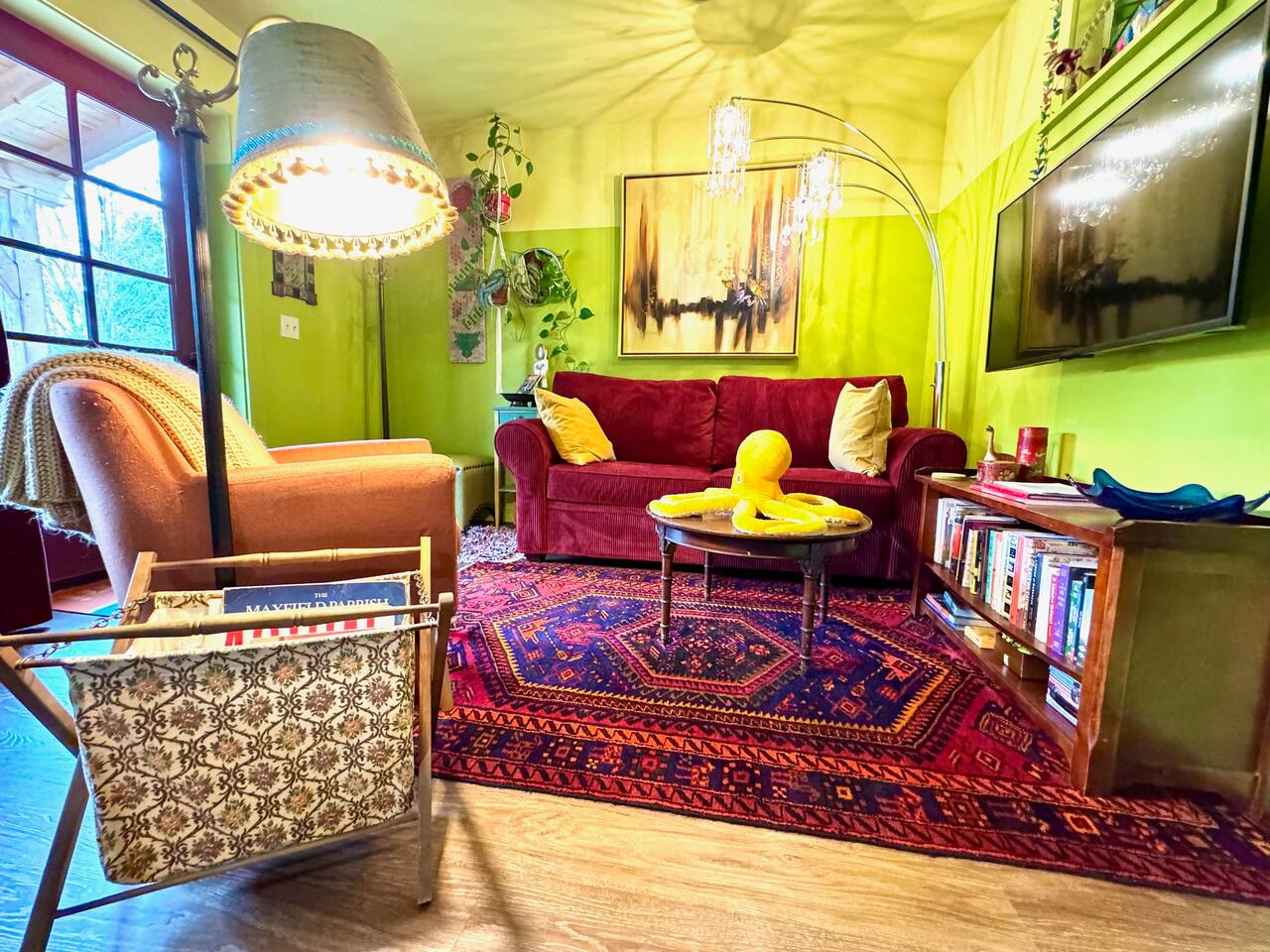 Escape to a vibrant woodland retreat that blends rustic charm with bold, funky design. Nestled on the edge of the forest, our unique getaway offers a colorful, eclectic interior where each corner has personality. Think bright hues, unexpected decor, and playful touches that make each room feel like an adventure. Wander trails on the property through fields and woods while nibbling seasonal delights like blackberries and blueberries and explore the meadow labyrinth.